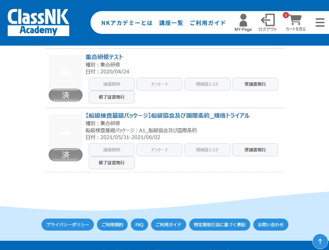 アンケートにご回答後、マイページより修了証書のダウンロードが可能