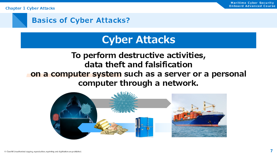 As ships become "smarter" and the further development of maritime industry is expected, the risks of unauthorized system intrusions, information leaks, and data falsification due to cyber-attacks are increasing accordingly. Under these circumstances, the first step to prevent cyber-attacks on ship systems is to acquire a sound knowledge of cyber security for those who are involved in ship operations.